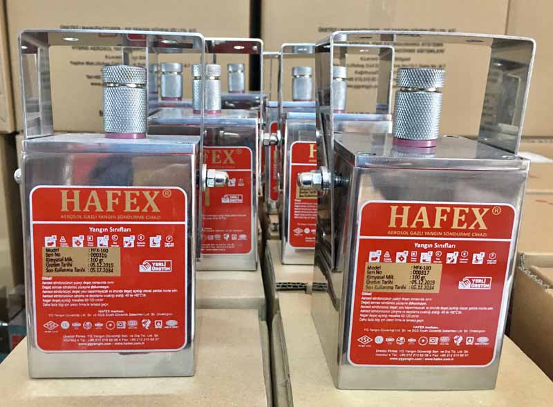 Bir aerosol yangın söndürücü etkinleştirildiğinde, söndürücünün içindeki tabletler, redoks (redüksiyon-oksidasyon) reaksiyonunun sonucu olarak ortalama 2 mikron boyutunda küçük parçacıklardan oluşan yoğun bir sis oluşturur. Bu aerosol sisi, yanma sırasında üretilen ve yangın için yakıt görevi gören kararsız ürünler olan serbest radikaller olarak da bilinen hidrojen ve hidroksil bileşikleri ile reaksiyona giren potasyum karbonat, potasyum bikarbonat ile azot, karbondioksit ve bir miktar su buharı içerir. Aerosol sisi bu serbest radikallere bağlanarak yanma reaksiyonuna yeniden entegre olmalarını önler. Bu, kimyasal yanma reaksiyonunun zincirini kırar ve yangını kimyasal olarak söndürür. Buna ek olarak, HAFEX® aerosol söndürücüler tarafından üretilen ve aerosol sisini oluşturan yoğun miktarda mikronize partikül ile ortamı soğutarak fiziksel bastırma sağlar. Aerosol partiküllerinin küçük boyutu, basınçlı ve sızdırmaz geleneksel söndürücülerin aksine, boru veya basınçlı nozul gerektirmeden hacmi tamamen doldurarak yangın söndürme işleminin başarılı olmasını sağlar. “HAFEX® aerosol yangın söndürücüler, basınçlı sıvı veya gaz yangın söndürücü madde depolamadıkları için sızdırmaz kaplara ihtiyaç duymazlar.”