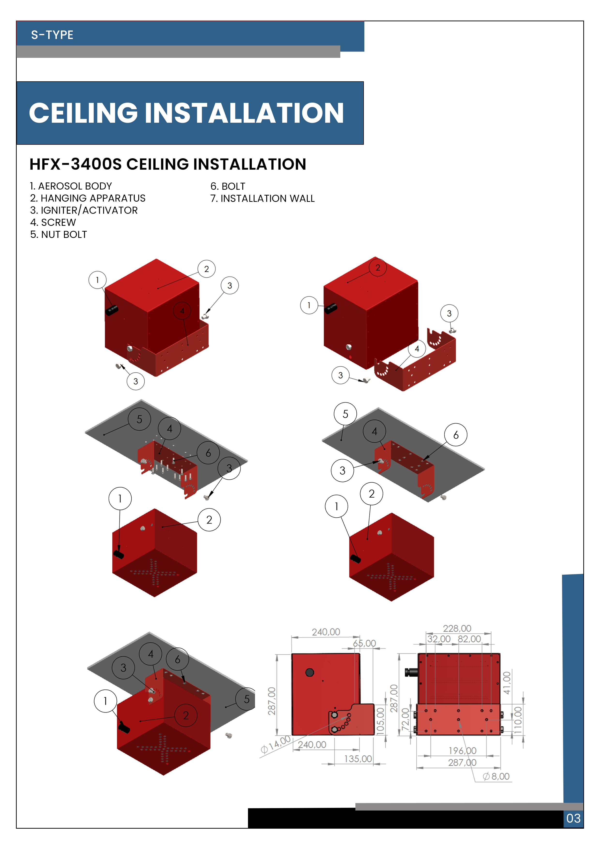 If we want to give a brief definition of the word aerosol; we can say that it is a multiphase system formed by the dispersion of very small solid or liquid particles, smaller than 10 microns, in a gas medium. This multiphase system remains suspended in the volume it is in and fills that volume for very long periods of time without collapsing. Aerosol fire extinguishers contain solid material compositions that are basically produced using alkali metal salts in solid form and various auxiliary substances and compressed into tablets within their metal carrier bodies. In the event of a fire, these solid composition tablets inside the aerosol extinguishers are activated automatically by the fire detection system or manually by the trigger on the extinguisher and a redox (reduction-oxidation) reaction begins within the tablet composition. The composition that forms the structure of the tablets, as a result of this reaction, produces a multi-phase fog cloud with fire-extinguishing properties, containing potassium carbonate and bicarbonates (average size of 2 microns), water vapor, carbon dioxide and dense nitrogen. This multi-phase fog cloud intervenes in the fire both physically (cooling effect) and chemically (binding to the free radicals, which are the products of the fire reaction, and removing them from the reaction), extinguishing the fire quickly and very effectively. Aerosol fire extinguishers are the most effective and cost-effective alternative to Novec 1230 and FM200 extinguishing systems, used instead of Halon gas extinguishers.