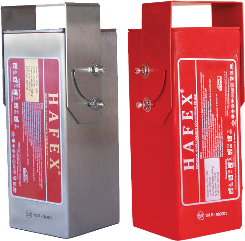 If we want to give a brief definition of the word aerosol; we can say that it is a multiphase system formed by the dispersion of very small solid or liquid particles, smaller than 10 microns, in a gas medium. This multiphase system remains suspended in the volume it is in and fills that volume for very long periods of time without collapsing. Aerosol fire extinguishers contain solid material compositions that are basically produced using alkali metal salts in solid form and various auxiliary substances and compressed into tablets within their metal carrier bodies. In the event of a fire, these solid composition tablets inside the aerosol extinguishers are activated automatically by the fire detection system or manually by the trigger on the extinguisher and a redox (reduction-oxidation) reaction begins within the tablet composition. The composition that forms the structure of the tablets, as a result of this reaction, produces a multi-phase fog cloud with fire-extinguishing properties, containing potassium carbonate and bicarbonates (average size of 2 microns), water vapor, carbon dioxide and dense nitrogen. This multi-phase fog cloud intervenes in the fire both physically (cooling effect) and chemically (binding to the free radicals, which are the products of the fire reaction, and removing them from the reaction), extinguishing the fire quickly and very effectively. Aerosol fire extinguishers are the most effective and cost-effective alternative to Novec 1230 and FM200 extinguishing systems, used instead of Halon gas extinguishers.